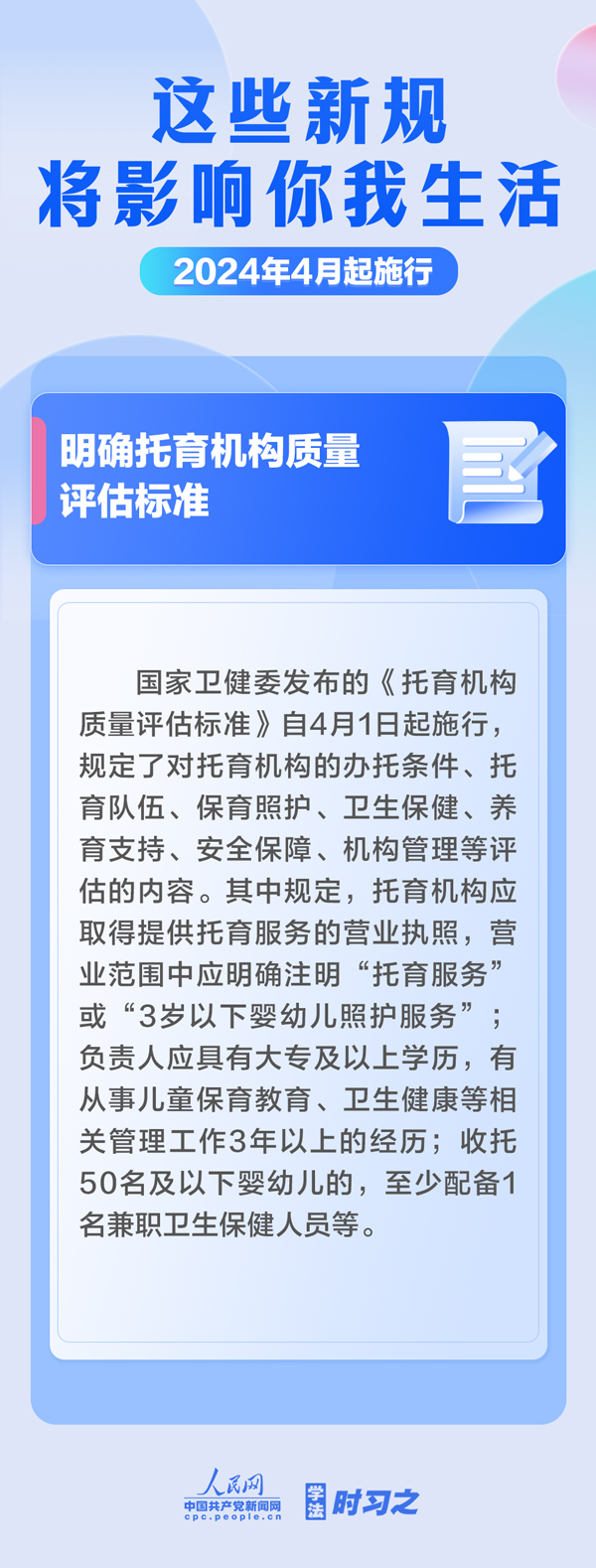 加強(qiáng)中央儲(chǔ)備棉管理;明確托育機(jī)構(gòu)質(zhì)量評(píng)估標(biāo)準(zhǔn);規(guī)范可再生能源電量收購……4月起,這些新規(guī)施行,將影響你我生活。(薄晨棣)