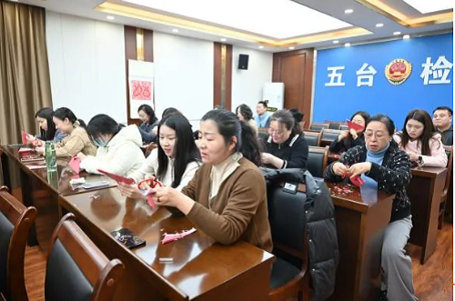 春風(fēng)拂面,芳華熠熠。3月3日,在第115個(gè)“三八”國際婦女節(jié)來臨之際,五臺縣檢察院開展“共護(hù)非遺之美 盡展檢花風(fēng)采”剪紙活動,以指尖藝術(shù)傳遞法治溫度,用文化傳承凝聚巾幗力量。活動邀請縣人大常委會黨組書記、宣傳部部長姚云萍,縣人民政府副縣長李文秀、孫士艷,縣婦聯(lián)主席朱彩虹,縣委宣傳部副部長張淑珍參加。院黨組書記、代檢察長宋志遠(yuǎn)參加活動,黨組副書記、主持日常工作的副檢察長牛鵬飛主持活動。