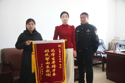 2025年3月15日,忻州市公安局交警支隊(duì)特勤大隊(duì)楊俊同志在利民三巷和氣象北巷路口附近撿到一塊學(xué)生手表,并積極耐心地想辦法與失主監(jiān)護(hù)人取得了聯(lián)系。因工作原因無法長時(shí)間在原地等待,便將手表交由附近公廁的環(huán)衛(wèi)工人妥善保管,最終順利物歸原主。兩日后,失主監(jiān)護(hù)人來到交警支隊(duì),送上一面印有“為學(xué)生尋得手表,好民警由衷感謝”字樣的錦旗以表謝意。
