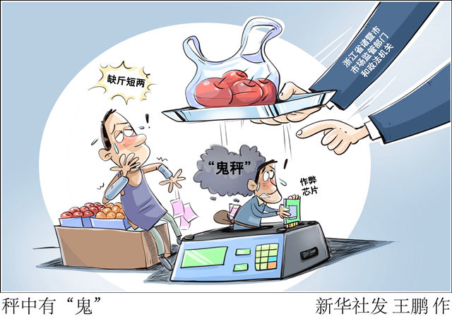 一臺小小的“鬼秤”,不僅侵害群眾合法權(quán)益,更有損公平誠信的市場環(huán)境。執(zhí)法部門要主動作為,為公序良俗撐腰,讓群眾利益得到保障;另一方面,遭遇缺斤短兩問題,消費(fèi)者也不要忍氣吞聲,多和不法現(xiàn)象“較真”:買完菜上“安心秤”復(fù)稱一下,對不法行為堅(jiān)決舉報(bào)。大家合力,一起讓“鬼秤”無處遁形。