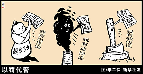 長期以來,一些部門熱衷以罰代管,甚至給罰款定指標(biāo),導(dǎo)致監(jiān)管出現(xiàn)不同程度的混亂。比如對一些該給予整改關(guān)停的違法經(jīng)營活動,以罰了事,這不僅使得有關(guān)危害得不到遏制,還讓相關(guān)市場主體產(chǎn)生“罰了就沒事了”的錯覺。在以罰為主的思維下,一些企業(yè)基于違法成本遠低于非法暴利的算盤寧肯“長期受罰”,而少數(shù)執(zhí)法部門則動起了“養(yǎng)魚執(zhí)法”的心思。