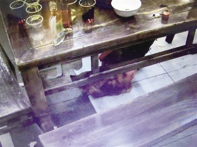 進店后,王先生來到廚房,稱了一只5.7斤的雞。按照王先生的要求,雞稱重后被送到后面現(xiàn)宰。看到員工將雞丟進了一個大桶內(nèi)開始磨刀,王先生便放心地回到餐桌上與朋友繼續(xù)聊天。