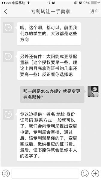 在一家機(jī)構(gòu)網(wǎng)店上,北青報(bào)記者看到,曾經(jīng)購(gòu)買過(guò)“實(shí)用新型專利申請(qǐng)或轉(zhuǎn)讓”的賣家評(píng)價(jià)稱,“感覺(jué)很方便,不用自己一個(gè)人絞盡腦汁熬夜了,服務(wù)為自己省了很多力,果然人多力量大,相信最后能拿到證書?!?/p>