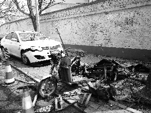 昨日,北京晨報(bào)記者來(lái)到酒仙橋二街坊附近,在1號(hào)樓樓下聚著一群人,正在討論凌晨爆炸的事情,“簡(jiǎn)直就是個(gè)移動(dòng)隱患”,“還好不是白天,不然肯定有人受傷”。記者看到,一輛綠色三輪車(chē)嚴(yán)重?fù)p毀,車(chē)輪扭曲倒在地上,車(chē)身部分被炸成了一張橫鋪著的大鐵皮,經(jīng)過(guò)灼燒后變得焦黑。三輪車(chē)的部分零件丟失,旁邊的樹(shù)上掛著鐵條,十幾米外的墻邊散落著三輪車(chē)的架子,而車(chē)輛原本放置電瓶的地方空無(wú)一物。在三輪車(chē)旁,一個(gè)大煤氣罐被炸成三部分,中間圓筒狀變成一塊鋪展后約1平方米的厚鐵皮,上下兩端則變成兩個(gè)圓形的蓋子(如圖)。