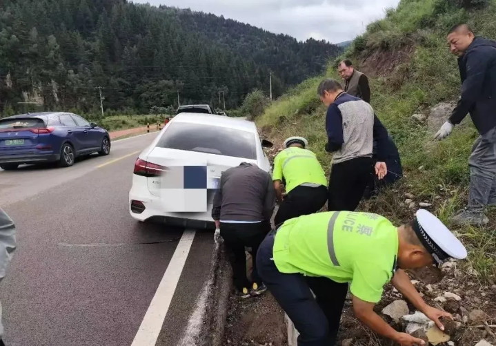 8月10日16時(shí)許,正值周六,寧武縣蘆芽山景區(qū)車水馬龍、游人如織。寧武縣公安局交警大隊(duì)輔警白濤在懸空村附近巡邏時(shí),發(fā)現(xiàn)一輛白色轎車右側(cè)掉到排水溝里,幾位游客站在一旁,滿臉焦急,隨即上前了解情況。得知嚴(yán)先生一行四人從廣東自駕到山西旅游,慕名來(lái)到蘆芽山,因欣賞沿途美景,駕駛不慎,車輛右側(cè)掉到排水溝無(wú)法動(dòng)彈。白濤立即向景區(qū)安保指揮部匯報(bào)情況,指揮部迅速指派附近巡防民輔警前往支援,并指令聯(lián)動(dòng)景區(qū)工作人員共同協(xié)助游客脫困。巡防民輔警和景區(qū)工作人員齊心協(xié)力、互相配合,邊撿石頭墊車,邊喊口號(hào)推車。經(jīng)過(guò)幾輪嘗試,車子一點(diǎn)點(diǎn)挪動(dòng),二十分鐘后,終于將車子從排水溝里推出。此時(shí),民輔警和景區(qū)工作人員已是滿頭大汗、渾身濕透,手上衣服上沾滿泥巴。嚴(yán)先生一行不停地表達(dá)著感激之情,白濤同志告訴嚴(yán)先生不要在意,這是寧武公安在景區(qū)的日常工作,每天都會(huì)幫助很多受困游客。嚴(yán)先生回到廣東后多次電話致謝,時(shí)常想起在寧武的美好旅程,他希望把寧武公安民警忠誠(chéng)履職、暖心助民的精神和山西人民淳樸厚道的品質(zhì)讓更多人知道。8月16日,他通過(guò)忻州公安便民服務(wù)平臺(tái)發(fā)出了感謝信。