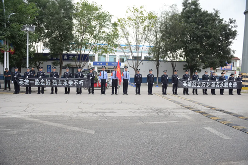 車隊(duì)途經(jīng)烈士武霖生前工作的晉昌派出所,昔日戰(zhàn)友駐足守候,手擎“武霖警務(wù)先鋒隊(duì)”隊(duì)旗,拉出寫有“英雄一路走好 烈士永垂不朽”“英雄烈士歸鄉(xiāng) 英名永載史冊”等話語的挽幅,再送戰(zhàn)友最后一程。