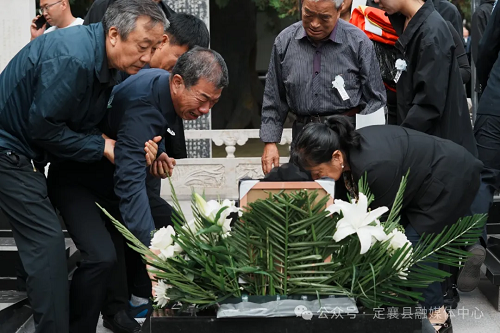 骨灰安葬后,參加儀式人員依次向烈士武霖敬獻(xiàn)鮮花,表達(dá)沉痛悼念和無限敬仰之情。