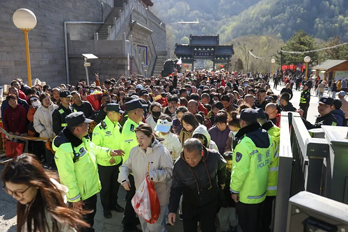 五臺(tái)山景區(qū)既有秀美的自然風(fēng)光,又有悠久的佛教文化,景區(qū)的吸引力給安保工作帶來(lái)很大壓力。忻州市公安局、五臺(tái)山公安分局兩級(jí)公安機(jī)關(guān)密切聯(lián)動(dòng)、精準(zhǔn)分析,在景區(qū)交通要道和核心景區(qū)設(shè)立警務(wù)執(zhí)勤點(diǎn),民警輔警猶如景區(qū)的 “守門人”,不僅能在游客高峰時(shí)高效疏導(dǎo)人流,解答游客關(guān)于景區(qū)游覽路線、注意事項(xiàng)等疑問,還能第一時(shí)間處理各類糾紛與突發(fā)事件,為游客保駕護(hù)航。