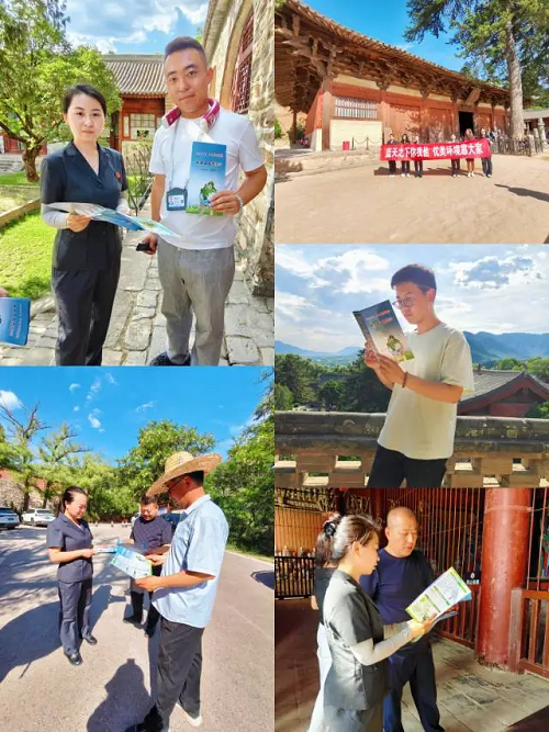 活動現(xiàn)場,法官干警向佛光寺工作人員及在場導(dǎo)游宣講了生態(tài)環(huán)境保護(hù)、文物古建保護(hù)的重要意義,倡導(dǎo)大家自覺遵守并積極推廣相關(guān)政策和法律法規(guī),耐心解答了現(xiàn)場游客提出的各類生態(tài)環(huán)境保護(hù)問題。同時,向游客普及文物保護(hù)相關(guān)法律法規(guī),鼓勵大家積極投身生態(tài)環(huán)境保護(hù)與文物保護(hù)工作,共同守護(hù)綠水青山,守護(hù)好文物古建。