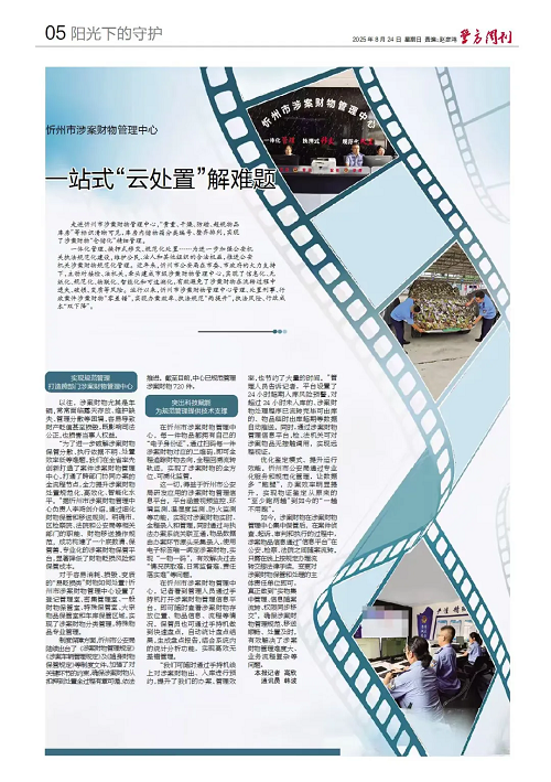 “為了進一步破解涉案財物保管分散、執(zhí)行依據(jù)不明、處置效率低等難題,我們在全省率先創(chuàng)新打造了案件涉案財物管理中心,打通了跨部門協(xié)同辦案的全流程節(jié)點,全力提升涉案財物處置規(guī)范化、高效化、智能化水平?!睋?jù)忻州市涉案財物管理中心負(fù)責(zé)人李鴻劍介紹,通過細(xì)化財物保管和移送規(guī)則,明確市、區(qū)檢察院、法院和公安局等相關(guān)部門的職能、財物移送操作規(guī)范,成功構(gòu)建了一個底數(shù)清、保管善、專業(yè)化的涉案財物保管平臺,顯著降低了財物貶損風(fēng)險和保管成本。