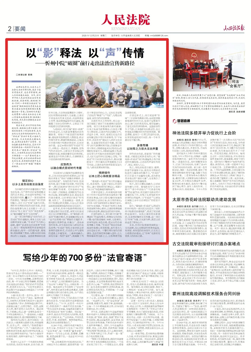 線(xiàn)下,項(xiàng)目注重場(chǎng)景融合,讓法治宣傳融入日常。微電影成為“公眾開(kāi)放日”“青少年法院行”“代表委員視察”的必備內(nèi)容,到訪(fǎng)者在光影流轉(zhuǎn)中讀懂法院工作,實(shí)現(xiàn)了從看電影到學(xué)法律的自然延伸,與“忻說(shuō)法”“讓群眾在閑暇之余學(xué)習(xí)法律知識(shí)”的初衷不謀而合。