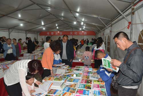 近日,定襄縣金鼎廣場的圖書展銷受到廣大群眾的熱烈歡迎,主辦方專門設(shè)置了閱覽區(qū),群眾不僅能享受圖書折扣,還能免費(fèi)閱覽所有圖書。此次活動(dòng)是定襄縣“我的中國夢(mèng),書香飄萬家”全民閱讀推廣主題活動(dòng)之一,為期15天。圖為5月12日,群眾在書展上購書閱讀。(劉小苗)