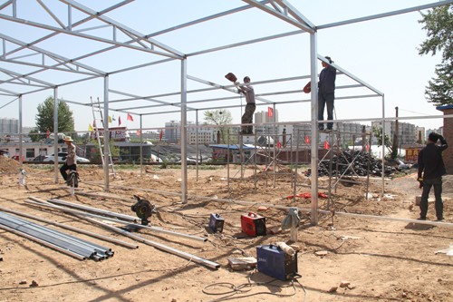 6月2日,原平市新原鄉(xiāng)柳巷村花農新建的花卉博覽大廳開始焊接鋼架,大棚建成后,可擴大花卉分區(qū)分類擺放,使消費有了更好的花卉欣賞、選擇空間。成為原平最大的花卉超市。(褚震 攝)