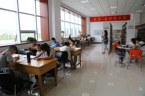 7月22日,一群孩子在靜樂縣圖書館閱讀少兒書籍。進(jìn)入暑假,寬敞明亮的靜樂縣圖書館每天都有近百名讀者免費閱覽各種書籍,今年最大特點是青少年學(xué)生比較多。近年來,靜樂縣為給讀者提供舒適的閱讀環(huán)境,先后安裝了空調(diào),配備了飲水機(jī)等。(閆曉梅 攝)