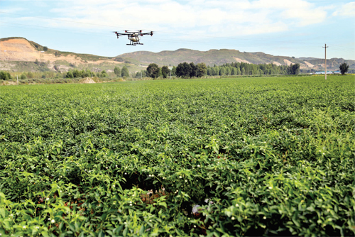 9月11日,在靜樂縣永倉種植專業(yè)合作社辣椒種植示范園,操作人員正在遙控無人機噴灑農藥。據(jù)了解,無人機噴灑農藥具有速度快、效率高等特點,1架無人機平均每天噴灑面積可達1000畝。(閆曉梅 攝)