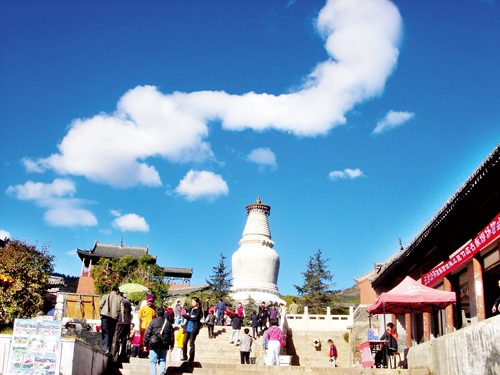 圖為游人在五臺山