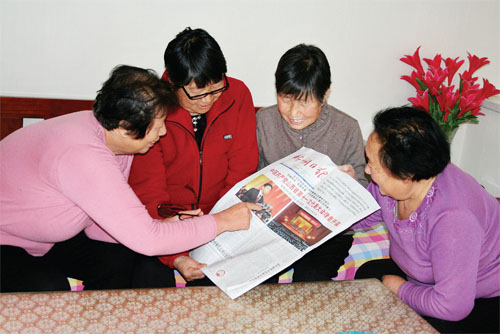 11月1日,原平市新華街村民蘇云香的家里左鄰右舍姐妹們正在暖意融融的家里一起通過報紙了解省十一次黨代會精神,她們看后高興地說,黨的政策越來越好,我們今后的生活會更加美好?。ㄚw春曉 攝)