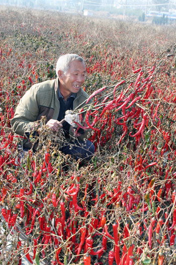 11月3日,原平市南灘村農(nóng)民正在查看種植的北京紅辣椒準備采摘。該村調(diào)整產(chǎn)業(yè)結(jié)構(gòu),由原來種植玉米地,如今引進種植了新品種北京紅辣椒,長勢喜人促進農(nóng)業(yè)增產(chǎn)農(nóng)民增收,老農(nóng)高興地說俺們?nèi)缃窨奎h的好政策,生活就像紅辣椒一樣過的紅紅火火。(趙春曉 攝)
