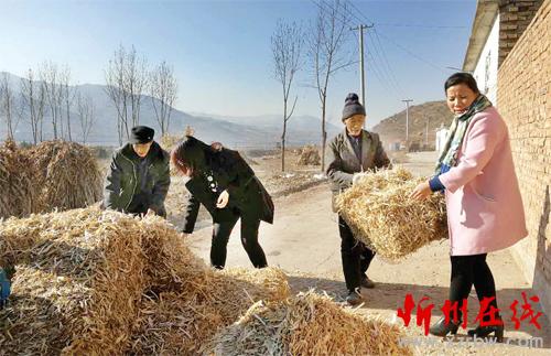“各精準扶貧戶,現(xiàn)在到村委會院內給羊領取草料,快些?。 ?2月10日上午,岢嵐縣嵐漪鎮(zhèn)石家會村的大喇叭上不斷傳來廣播,村民們奔走相告,在村的精準扶貧對象紛紛來到村委會院內。頓時,村委會院內像過年一樣熱鬧,拉草料的大車已經停了一溜,每輛車上都是50斤一捆的草料,臺階上擺著整齊的桃心圖案的漆布、嶄新的鍋蓋、床單,第一書記楊英正在跑前跑后招呼著老鄉(xiāng)們前來領取物品、簽字。