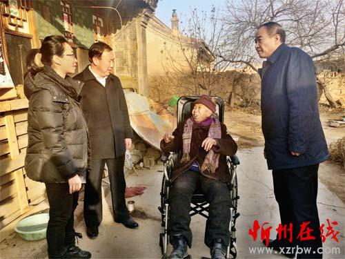 1月4日,山西省人防辦組織干部職工開展送溫暖、獻(xiàn)愛心活動。當(dāng)日,省人防辦工作人員攜帶著38名干部職工捐款購買的大米、白面走進(jìn)定點幫扶的繁峙縣光裕堡鄉(xiāng)光裕堡、華巖、大木瓜、小李牛四個貧困村,走訪慰問了630戶貧困戶,為他們送上慰問品和“愛心輪椅”,讓他們感受到了冬日的溫暖。圖為67歲的居大媽高興地試用愛心人士剛送到的新輪椅。(本報記者 李春平 攝)