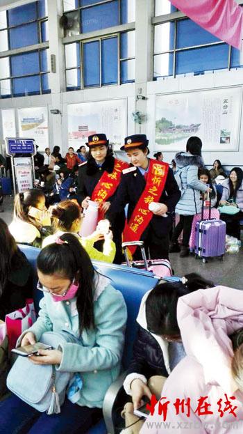 春運第一天,忻州站為確保今年春運旅客運輸組織的安全有序,實現(xiàn)“平安春運、有序春運、溫馨春運”的目標,全面部署,優(yōu)化組織流程,強化重點崗位配置,制訂了相關(guān)應急預案,在人力、物力等方面做足了充分準備。圖為工作人員為旅客送水(志遠/文 明強/圖)