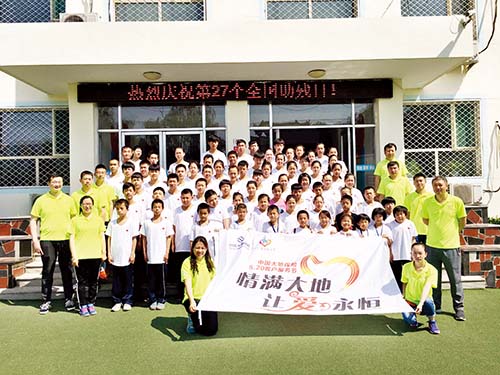 在全國助殘日前夕,5月20日,大地財產(chǎn)股份有限公司忻州分公司的愛心志愿者們來到忻州市特殊教育學(xué)校為學(xué)生們捐贈了籃球、羽毛球拍、書本等價值3千余元的文體用品。圖為志愿者群體與學(xué)生合影。郭浩東 攝影報道
