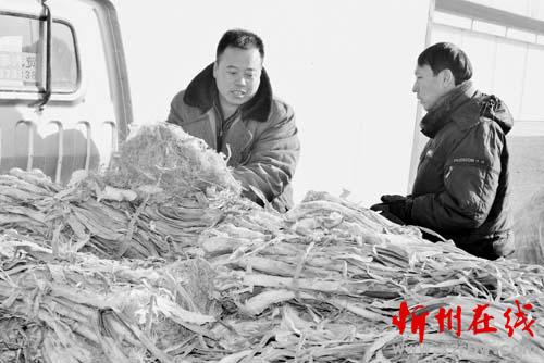 1月19日,原平市新原鄉(xiāng)新華街村的農(nóng)民正在市場上銷售大蔥。近年來,該市農(nóng)民大力發(fā)展一村一品種植業(yè),形成了規(guī)?;?、品牌化、效益化,有效地促進了農(nóng)民增產(chǎn)增收。趙春曉 攝
