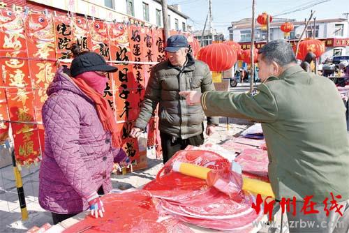 春節(jié)臨近,代縣城鄉(xiāng)農(nóng)貿(mào)市場呈現(xiàn)出商品豐富、貨源充足、年味十足的喜人景象。春聯(lián)、燈籠、窗花、年畫,喜慶吉祥,十分暖眼;土特產(chǎn)、肉食品、新鮮菜、小商品,應有盡有,任人選挑。圖為顧客正在挑選春聯(lián)。石俊文 攝