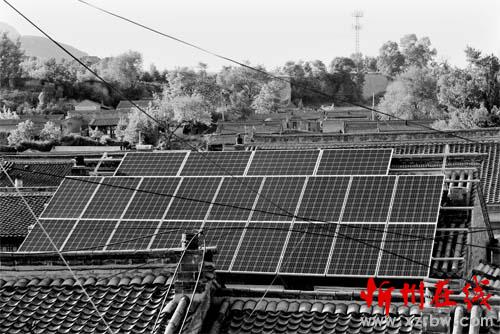 五臺(tái)縣豆村鎮(zhèn)閆家寨村有著上千年的歷史,全村一式的古建筑傳統(tǒng)瓦房。近年來,在豆村鎮(zhèn)黨委、鎮(zhèn)政府脫貧攻堅(jiān)的號(hào)召下,全村17家貧困戶在瓦房上建起戶用光伏電站17個(gè),總?cè)萘?5KW。圖為“瓦房上”的發(fā)電站。