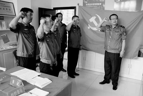 針對支隊(duì)人員少、任務(wù)重的困難,同時(shí)又面臨機(jī)構(gòu)改革的實(shí)際,2018年,支隊(duì)提出“看齊追隨鑄隊(duì)魂,提高能力抓效率,正風(fēng)肅紀(jì)樹形象,健全機(jī)制抓監(jiān)管”的總體工作思路,充分發(fā)揮支部的帶頭引領(lǐng)作用。首先是強(qiáng)化組織建設(shè)。支部設(shè)書記、副書記、組織委員、宣傳委員、紀(jì)檢委員,另設(shè)兩個黨小組,實(shí)行矩陣式工作機(jī)制。人人有職責(zé)、有任務(wù)、有目標(biāo)。其次是落實(shí)重大事項(xiàng)支部集體研究的制度。支隊(duì)重大決策事項(xiàng)、重大執(zhí)法案件等都要經(jīng)支委集體研究決定后執(zhí)行。第三是發(fā)揮黨員帶頭作用,帶動全隊(duì)工作。支隊(duì)協(xié)勤人員和借調(diào)人員多,通過充分發(fā)揮黨員的先鋒模范作用,帶動全隊(duì)時(shí)刻保持昂揚(yáng)的奮進(jìn)姿態(tài)。