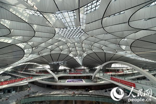 北京大興國際機場作為獻禮新中國成立70周年的國家標志性工程,地處京津冀核心地帶,是未來國家乃至世界級綜合交通樞紐。從空中俯瞰海星狀的航站樓,五個支廊呈放射狀從航站樓中心向外延伸出去,像一只鋼鐵大鳥展翅欲飛。