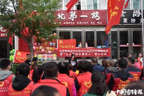 秋風(fēng)送爽,丹桂飄香。10月7日,中國雷鋒報(bào)忻州區(qū)雷鋒工作站陽光公益聯(lián)絡(luò)處在九九重陽之際舉行揭牌授旗儀式,這標(biāo)志著忻府區(qū)陽光公益服務(wù)隊(duì)志愿者們?cè)诹昴サZ中不斷成長壯大,最終融入到《中國雷鋒報(bào)》這個(gè)大家庭當(dāng)中,爭當(dāng)雷鋒精神的種子,把雷鋒精神廣播在祖國大地上。