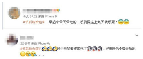 十一假期結(jié)束 四大建議教你遠離節(jié)后綜合癥 節(jié)后綜合癥是人們在假期之后出現(xiàn)的各種生理或心理表現(xiàn),例如在節(jié)后的幾天里感覺厭倦,提不起精神,上班和學(xué)習效率低,甚至有不明原因的惡心、神經(jīng)衰弱等。為避免出現(xiàn)這種情況,中新網(wǎng)梳理了一些飲食、休息等方面的建議,讓你在節(jié)后第一天精神滿滿。 調(diào)整作息 早睡早起 自2015年2月至今,新浪微博“#節(jié)后綜合癥#”的話題主頁持續(xù)有新帖發(fā)布,總閱讀量超過1000萬。節(jié)后第一天尚未到來,已經(jīng)有網(wǎng)友發(fā)帖抱怨“一早起來暈天暈地的”“好想睡他個昏天暗地”。 相對于上班、上學(xué)來說,很多人假期時的作息非常不規(guī)律。有人徹夜上網(wǎng)或打牌,有人奔波在旅途,生物鐘被打亂。節(jié)后又很難快速適應(yīng),晚上睡不著,白天睡不醒。 補救措施之一是調(diào)整作息,盡量早睡早起,有條件的話可以適當午休。如果晚上難以入睡,洗個熱水澡會有助于睡眠。