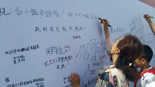 長征路小學黨支部書記湯永斌告訴記者:“組織學生、家長參觀新校區(qū),我們不僅是展示新校區(qū)優(yōu)美的環(huán)境,先進的教學設施設備,培養(yǎng)師生熱愛新校區(qū),愛護新校區(qū)的情感, 更重要的是我們把綜合實踐課的課堂開到了新校區(qū),利用孩子們眼中所看到的新校區(qū),來激發(fā)學生的創(chuàng)作靈感,拓展他們的想象力,從而提高學生繪畫、書法、攝影、寫作的能力和水平。并表示:“長征路小學將以此次搬遷為契機,繼續(xù)秉承學校優(yōu)良辦學傳統(tǒng),努力建設具有“一流硬件設施,一流師資隊伍,一流教育管理,一流辦學特色,一流教學質(zhì)量”的“五個一流”學校。把新長小創(chuàng)辦成一所學生樂學、教師幸福、家長滿意的學校,讓這塊全市小學教育的金字招牌熠熠生輝,為忻州優(yōu)質(zhì)、均衡教育發(fā)展作出重大的貢獻?!保ê路郑?/p>