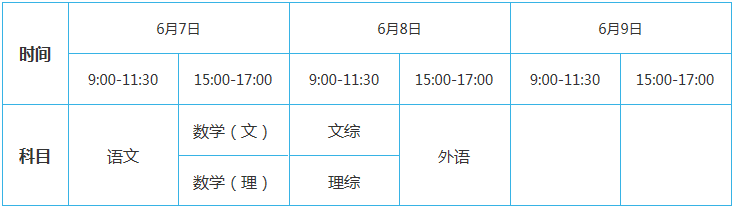 山西:2017高考時(shí)間及科目