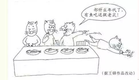 餐桌,許多貓吃魚,就一只貓捉老鼠,別的貓說(shuō):“有魚吃還捉老鼠?”
