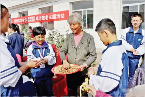 本報(bào)訊 為弘揚(yáng)中華優(yōu)秀傳統(tǒng)文化,倡導(dǎo)尊老、敬老、愛老、助老的傳統(tǒng)美德,引導(dǎo)師生樹立“尊老、敬老、愛老、助老”的良好風(fēng)尚,近期以來,忻州實(shí)驗(yàn)中學(xué)校開展了“金秋情深愛滿重陽”尊老敬老系列主題活動(dòng)。