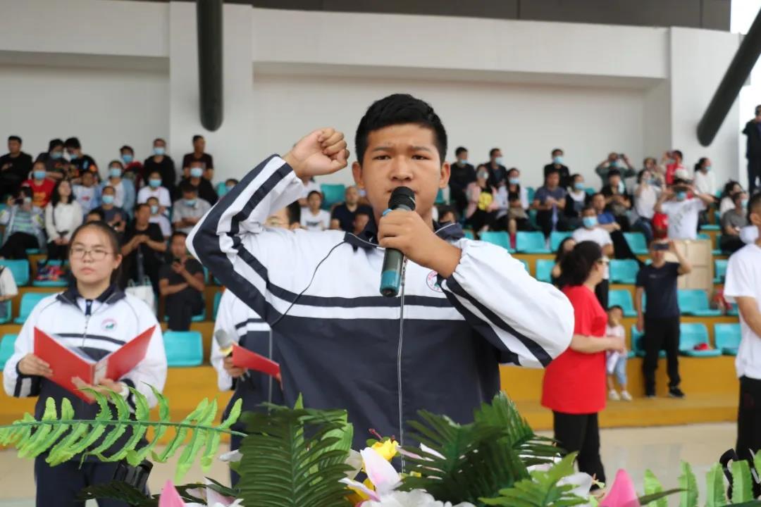 “少年智則國智,少年富則國富;少年強則國強,少年獨立則國獨立……”激昂奮進(jìn)的聲音在北校區(qū)的操場上空回響,在全體高三學(xué)生《少年中國說》激情澎湃的誦讀聲中,本次大會正式開始。莊嚴(yán)的升旗儀式后,學(xué)生代表、教師代表和家長代表依次獻(xiàn)詞:好友同窗與共的奮斗時光,老師日復(fù)一日的悉心陪伴,父母無私無盡的付出關(guān)愛,在一句句溫情感人的獻(xiàn)詞中歷歷浮現(xiàn),激蕩心靈。