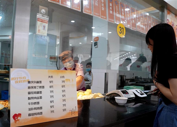 上海交通大學(xué)的食堂的各類面條實(shí)行大份、小份供餐。9月1日起,上海交通大學(xué)的學(xué)生開(kāi)始分批、錯(cuò)時(shí)到校開(kāi)學(xué)。開(kāi)學(xué)后,學(xué)校食堂加強(qiáng)節(jié)約糧食、光盤(pán)行動(dòng)的宣傳,并采取多項(xiàng)措施引導(dǎo)師生員工文明用餐,杜絕浪費(fèi)。
