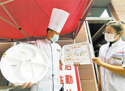 9月15日,北京交通大學(xué)餐廳推出“我的餐盤(pán)我做主——優(yōu)化膳食結(jié)構(gòu) 夯實(shí)免疫基石”主題活動(dòng)?;顒?dòng)倡導(dǎo)飲食多樣化,減少食物浪費(fèi)。餐盤(pán)上標(biāo)注的谷薯、蔬菜、水果、魚(yú)肉等膳食種類,將科普和節(jié)約融為一體。