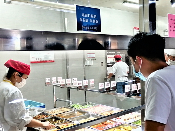 天津大學(xué)學(xué)生食堂新學(xué)期分別推出小份菜窗口、大小份售賣、小碗菜自選等售賣形式,倡導(dǎo)物盡其用,鼓勵(lì)餐后剩余打包。同時(shí)對(duì)于雞腿、鴨腿、雞翅、魚(yú)等品種,可根據(jù)個(gè)數(shù)、塊數(shù)規(guī)格售賣或稱重售賣。售賣形式的豐富,便于就餐者按需取用,既節(jié)約又實(shí)惠。
