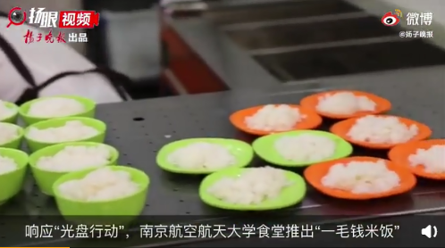 南京航空航天大學(xué)食堂不僅推出“一毛錢米飯”,還推出“光盤(pán)獎(jiǎng)勵(lì)”,只要“光盤(pán)”,便能得到酸奶等獎(jiǎng)勵(lì)。