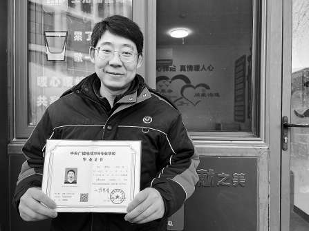 聽說學(xué)員通過考試后可以獲得國家承認(rèn)的成人中專畢業(yè)證書,學(xué)習(xí)費(fèi)用全部由街道補(bǔ)貼,蔣風(fēng)登立刻動了心。在工作人員的幫助下,他報(bào)名學(xué)習(xí)計(jì)算機(jī)應(yīng)用專業(yè),開始了半工半讀的生活。晚上下班回到家,他一遍遍地刷著網(wǎng)課;白天,他利用送快遞的間隙鞏固知識點(diǎn)。經(jīng)過一年的學(xué)習(xí),2024年3月,他順利拿到了畢業(yè)證。