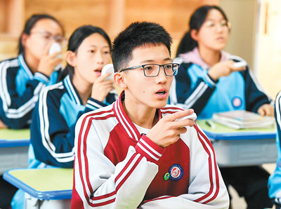 昆都侖區(qū)一所中學(xué)的學(xué)生使用英語(yǔ)聽說(shuō)學(xué)習(xí)平臺(tái)進(jìn)行練習(xí)。昆都侖區(qū)教育局供圖