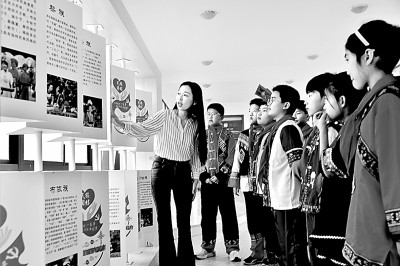 江蘇省如皋經(jīng)濟技術(shù)開發(fā)區(qū)第三實驗小學(xué)“紅石榴家園”,統(tǒng)戰(zhàn)部門工作人員向?qū)W生介紹各民族文化習(xí)俗。吳樹建攝/光明圖片