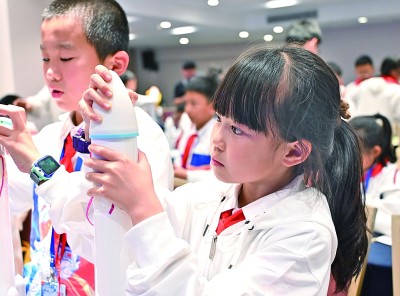 少先隊員走進文昌航天發(fā)射場,參加制作水火箭等活動。新華社發(fā)