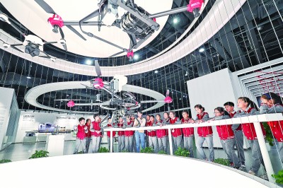 學生們在浙江省湖州市德清縣地理信息科技館學習無人機地理測繪知識。新華社發(fā)