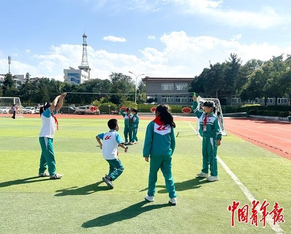 “學(xué)生身心健康是每個(gè)家庭的熱切期盼,也事關(guān)國家和民族的未來?!痹趪鴦?wù)院新聞辦公室今年9月23日舉行的“高質(zhì)量完成‘十四五’規(guī)劃”系列主題新聞發(fā)布會(huì)上,教育部副部長王嘉毅介紹,“十四五”期間,教育部認(rèn)真踐行健康第一的教育理念,著力破解“小眼鏡”“小胖墩”及心理健康等問題,促進(jìn)學(xué)生身心健康全面發(fā)展,實(shí)施“學(xué)生體質(zhì)強(qiáng)健計(jì)劃”,推動(dòng)各地增加體育課、體育課后服務(wù)和大課間,推動(dòng)課間活動(dòng)由原來的10分鐘延長到15分鐘,落實(shí)中小學(xué)生每天綜合體育活動(dòng)2小時(shí)要求。 近日,中青報(bào)·中青網(wǎng)記者走進(jìn)固原市多所中小學(xué)校,實(shí)地了解學(xué)生體育鍛煉開展情況,以及體育育人工作推進(jìn)成效。 —————————— “以前課間10分鐘,去趟衛(wèi)生間、交個(gè)作業(yè)就結(jié)束了;現(xiàn)在15分鐘,能和同學(xué)跳會(huì)兒繩、打會(huì)兒排球,一到課間大家都出教室了。”寧夏回族自治區(qū)固原市弘文中學(xué)八年級(jí)1班學(xué)生海喻的感受,折射出寧夏不少中小學(xué)課間活動(dòng)的新變化。