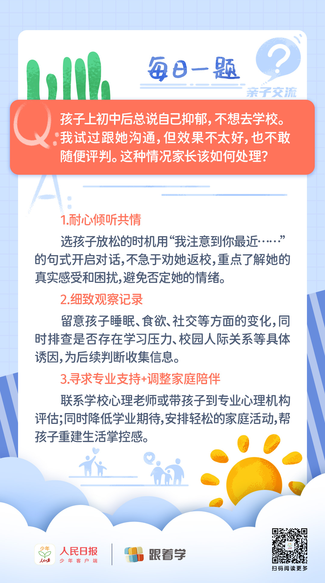 每日一題丨初中生自稱抑郁不愿意上學(xué),家長該如何處理?