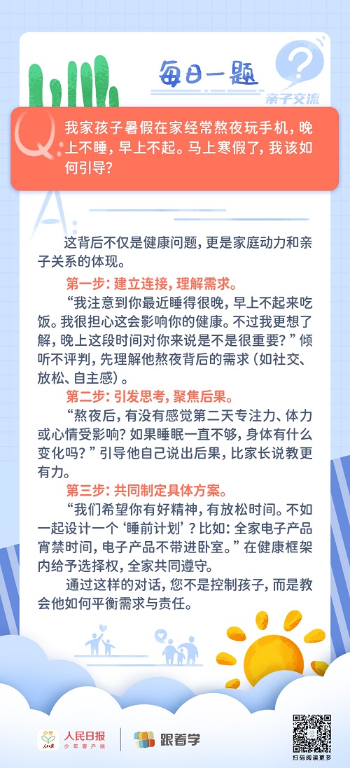 每日一題丨孩子假期在家,經(jīng)常熬夜玩手機至凌晨,家長該如何引導?